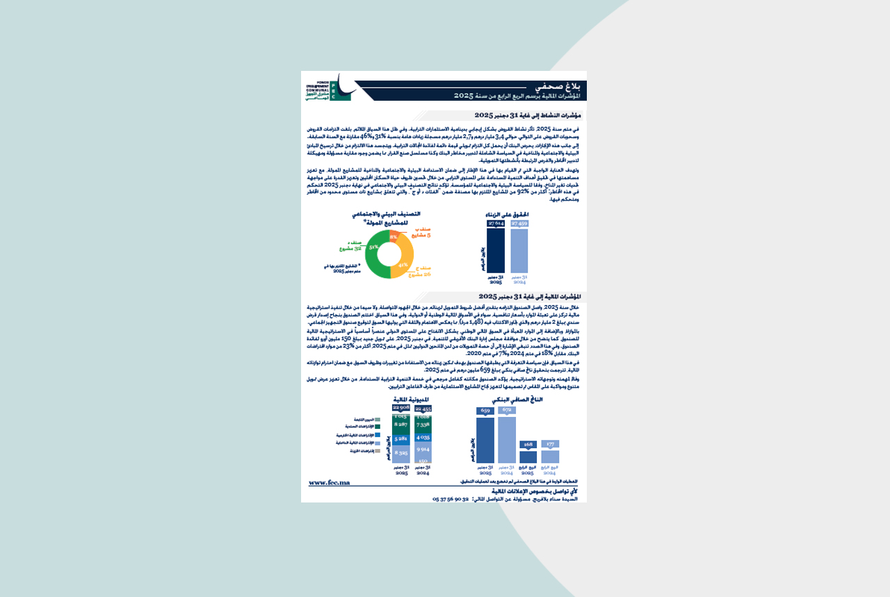 ينشر الصندوق بلاغا صحفيا يتعلق بالمؤشرات المالية للربع الرابع من سنة 2025.