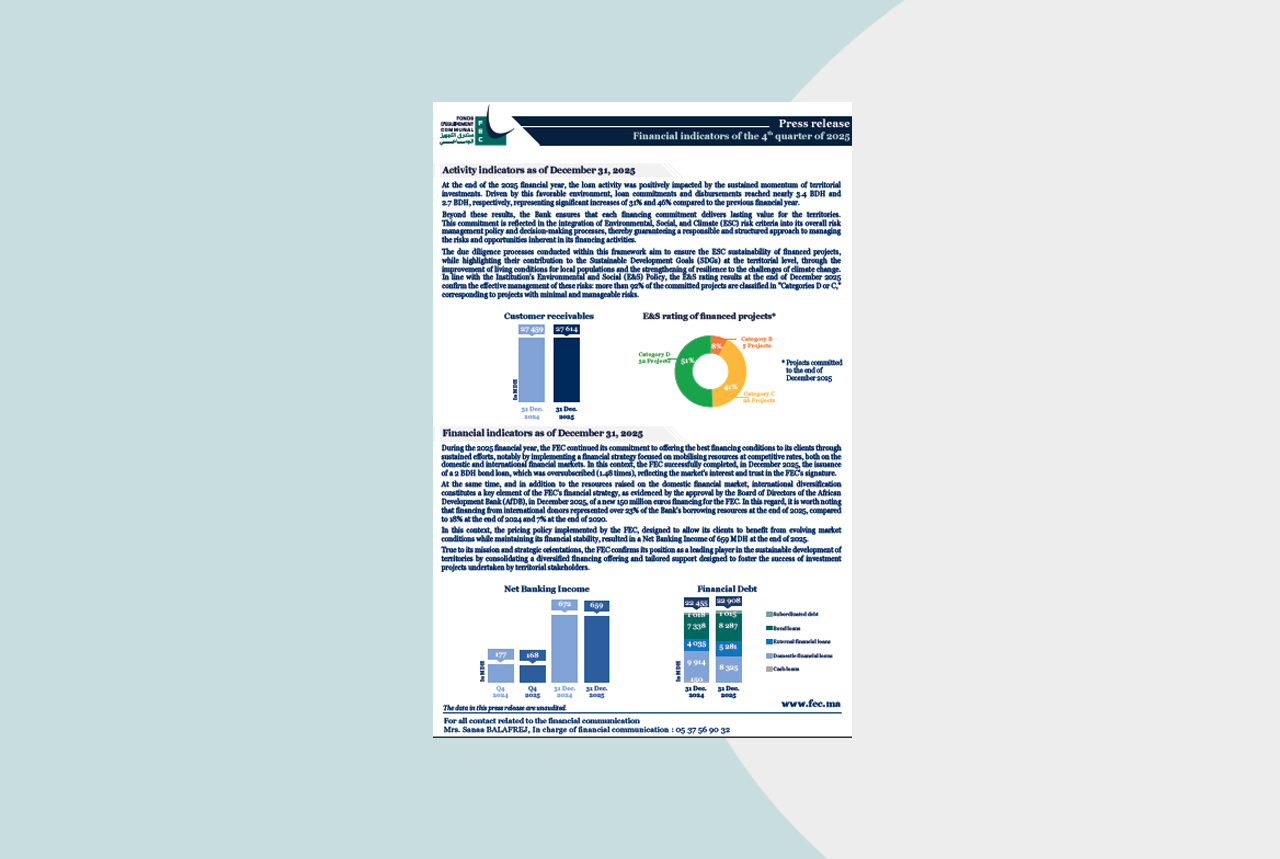 The FEC publishes a press release relating to the financial indicators for the 4th quarter of 2025.